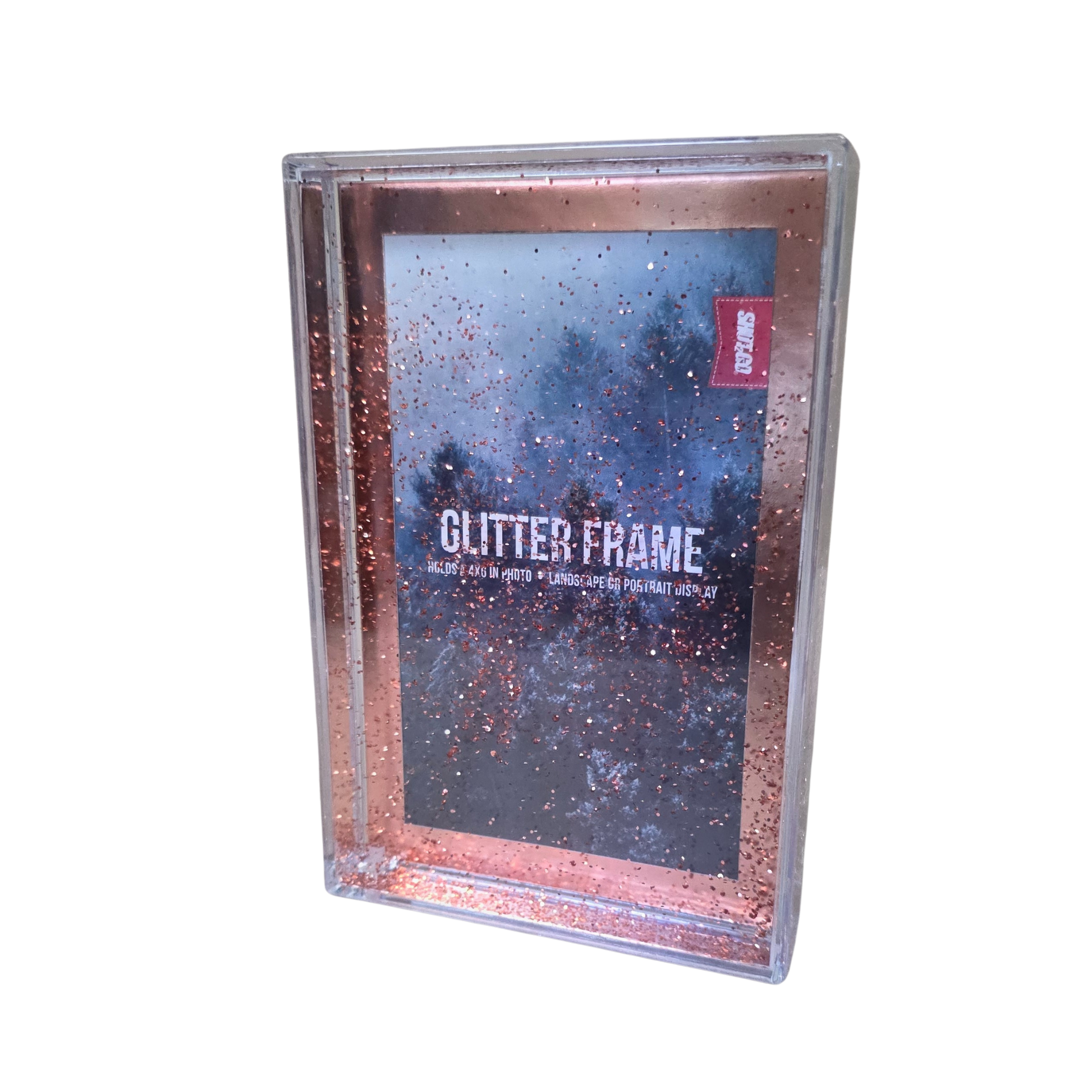 Add a little sparkle to your favourite photo with the Rose Gold Glitter Frame 6×4. This fun and eye-catching acrylic block photo frame features a clear liquid-filled design with floating rose gold glitter that gently moves when the frame is shaken, creating a playful and magical effect.